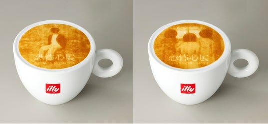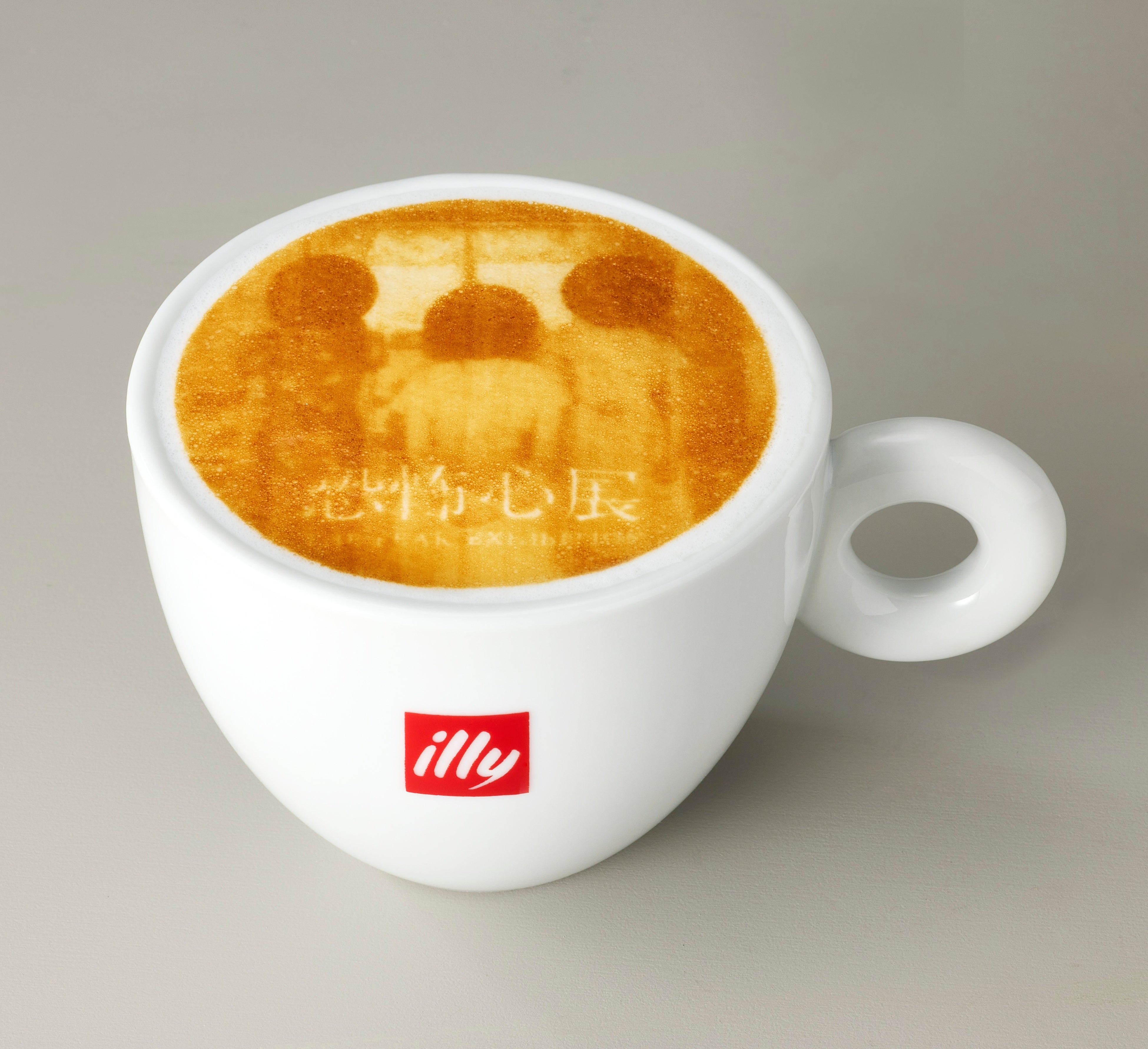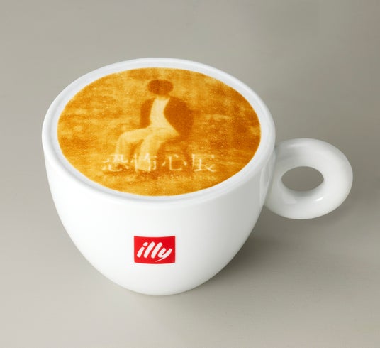 恐怖心展のデザインをモチーフにしたラテアートが入った限定ドリンクです。