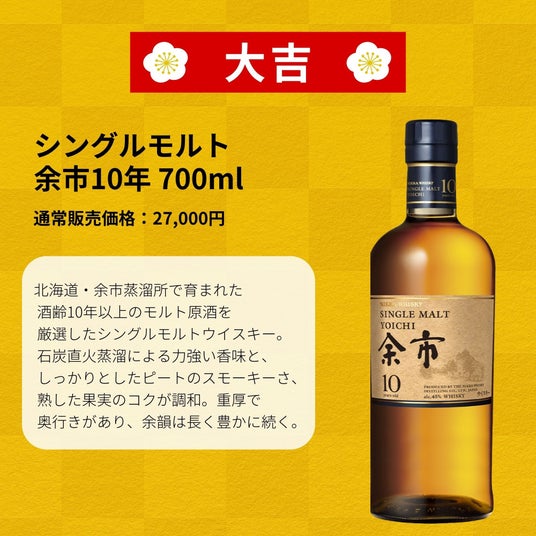 1等は幻の竹鶴25年、2等に山崎12年。特別企画"春の黄金みくじ"が予約販売開始
