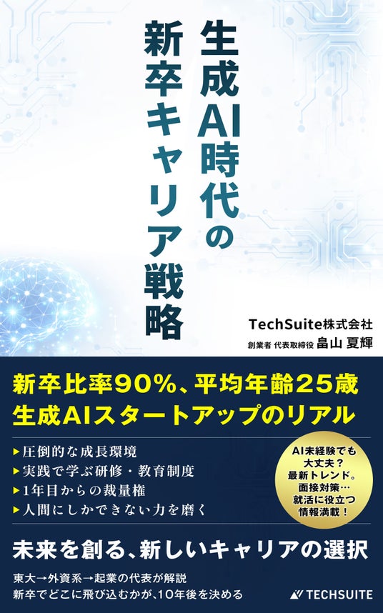 TechSuite株式会社(本社:東京都港区芝浦四丁目19番1号芝浦アークビル2階、代表取締役:畠山夏輝)は、新刊『生成AI時代の新卒キャリア戦略: 新卒比率90%・平均年齢25歳。AIスタートアップのリアル(TechSuite Books)』をAmazonにて発売しました。なお、Kindle版や紙媒体での閲覧を希望される方はご購入が必要ですが、PDF版は下記より誰でも閲覧が可能です。