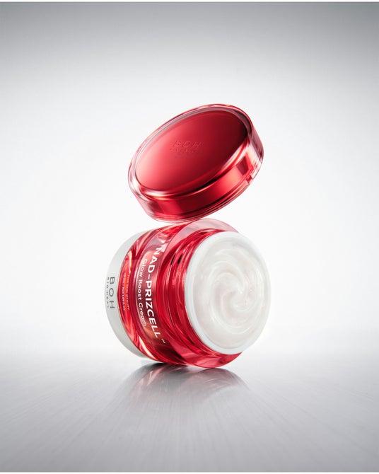 次世代スキンケア成分NAD*²を約100ppm*⁸配合。お肌の輝きを引き上げるバイオヒールボ独自成分NADプリズセル(TM)*¹と、ペプチド*⁹やヒアルロン酸*¹⁰、セラミド*¹¹、リジュバイブフィル(TM)*¹²などの美容液成分を贅沢配合した“ツヤ製造クリーム”。