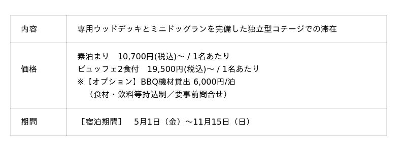 愛犬と一緒に宿泊!コテージルーム宿泊プラン