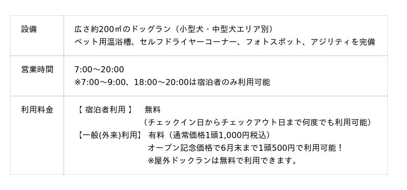 加速するペットツーリズムの需要に応え、愛犬と宿泊可能な「ステイウィズドッグルーム(全10室)」や「屋外ドッグラン」などペットと一緒に過ごせる高原リゾートホテルとしての環境整備を進めてきました。2026シーズンは新たに「屋内ドッグラン」をオープンすることで、雨天や猛暑に左右されず、大切な愛犬との思い出作りを一層サポートします。