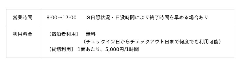 2026シーズン、天然芝グラウンドを1面増床し、「全3面体制」に拡充します。標高600mの清涼な空気の中に広がる天然芝は、サッカーやラクロス等のスポーツ合宿、大会開催に最適なコンディションを提供します。ホテル隣接の利便性に加え、練習後は天然温泉でリフレッシュできる等、アスリートのパフォーマンスを支える環境を整えました。 一方で、新設グラウンドは「宿泊者専用フリーエリア」としても開放。サッカーボールやバドミントン等のレジャー用品を無料で貸し出しており、ご家族やグループで手ぶらで楽しめます。本格的なスポーツ需要に応えつつ、大自然の中で誰もが自由に羽を伸ばせる、贅沢な天然芝フィールドをご体感ください。