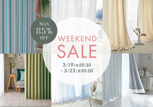 開催期間:3/19 (金)10:30~3/23(月)10:00内容:最大85%OFF、セットカーテン10%OFF