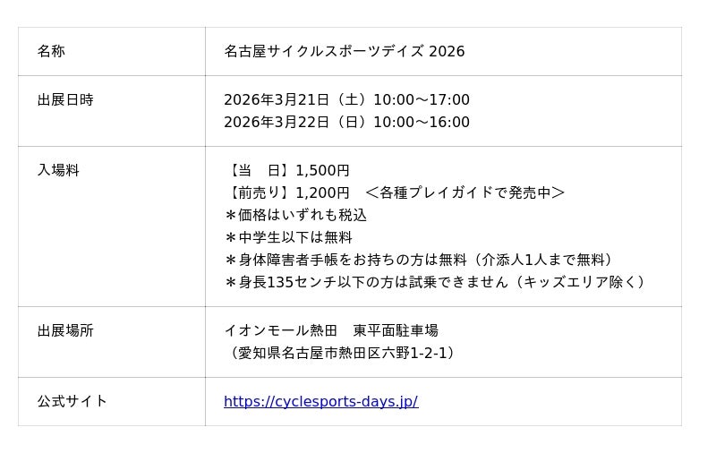 Shokz(ショックス)は、東海エリア最大の自転車イベント「名古屋サイクルスポーツデイズ 2026」出展します。 ~3月21日(土)・22日(日)午前10時00分開場!~