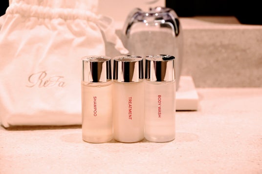 ご滞在中は、シャワーヘッドやドライヤー、ヘアアイロンなどのReFa製品を自由にご利用いただけるほか、ご自宅でもReFaの使用感を楽しめる限定アメニティのお土産をご用意しています。