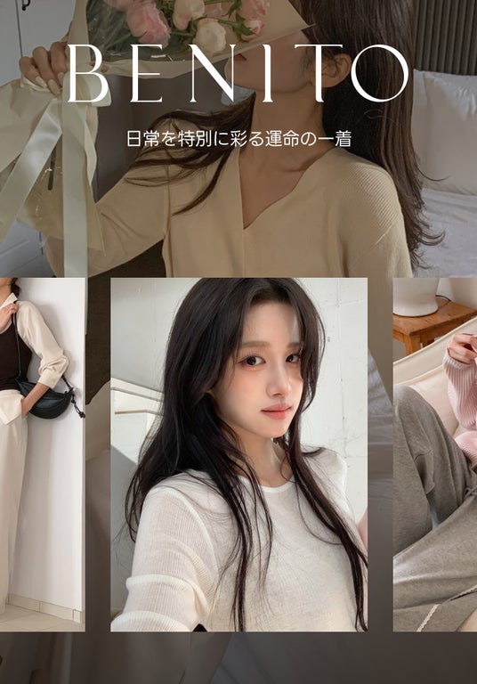 - BENITOは、洗練された「大人可愛い」オリジナルアイテムを展開し、韓国の働く女性たちから絶大な支持を集めているブランドです。 カーディガンやブラウス、スラックスなどを主力とし、上質な素材感と細部までこだわったクオリティの高さに定評があります。