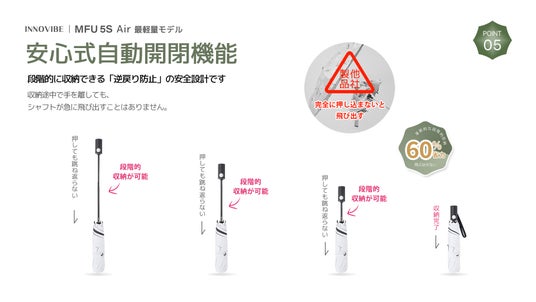 軽さ・機能性・デザイン性を兼ね備えた「MFU5S-AIR」は、日常使いの新たなスタンダードとなる折りたたみ傘です。