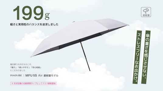 ~約199gの超軽量モデル「KONCIWA MFU5S AIR」登場 ― 5秒でたためる晴雨兼用折りたたみ傘~