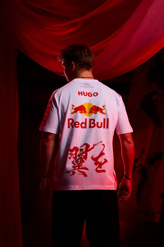 本リバリーは、新発売のさくらんぼ味のレッドブル「レッドブル・エナジードリンク チェリーエディション」の世界観を反映した特別仕様です。缶と同様に、赤と白を基調としたカラーリングがマシン全体を彩ります。さらに、日本GP限定デザインとして、書道家・現代美術家の青柳美扇さんとのコラボレーションが実現。一瞬にすべてを懸ける青柳さんの集中力と内なるエネルギーを解き放った筆致で書かれた「日本」「チェリーエディション」「翼をさずける」の文字が、マシンの随所にあしらわれているとともに、チームの極限への挑戦に敬意を込めて揮毫された力強い筆使いは、スピード感を生み出し、赤・白・銀色を基調としたデザインに立体感と勢いをもたらしています。