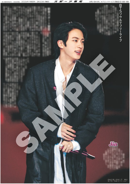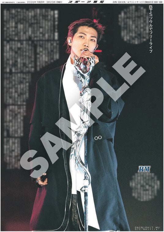 スポーツ報知を発行する報知新聞社(代表取締役社長・長谷川剛)は新聞の一部紙面をコンビニエンスストアのマルチコピー機からプリントできる「スポーツ報知コンビニプリント」サービスを展開中。スポーツ紙ならではの大きな写真を使った紙面をプリント版として販売しています。新たに3月23日付掲載、7人完全体で活動を再開した世界的グループ「BTS」が韓国ソウル・光化門広場一帯で行ったフリーライブ「THE COMEBACK LIVE ー ARIRANG」の様子を伝えた紙面を発売中です。全員バージョンと各個人バージョン全8種類になります。