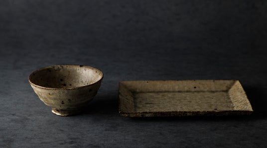 Atsushi Ogata尾形アツシ|荒山粉引めし碗 ヒビ粉引長方皿