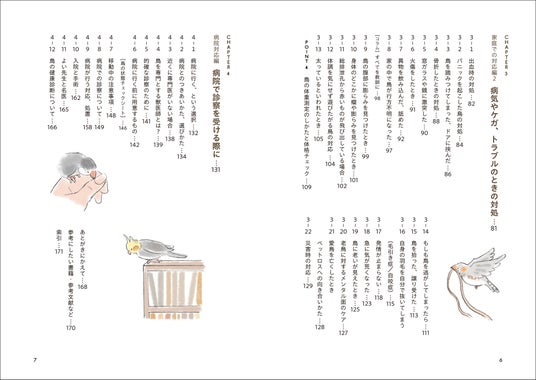 鳥と暮らす前に知っておいたほうがよいことや、愛鳥に普段と違うおかしな様子が見えたとき、病気やケガ、トラブルなどがおこったとき、病院とのつきあいかたや選びかた、病院に行くときに知っておきたいことなど、メンタル面も含めた、困りごとを解決するためのヒントが満載です。