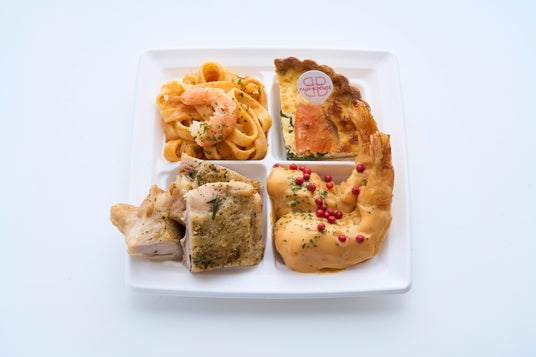 チキン・パスタ・キッシュ・海老マヨネーズ4種類を詰め合わせたDELIプレート。