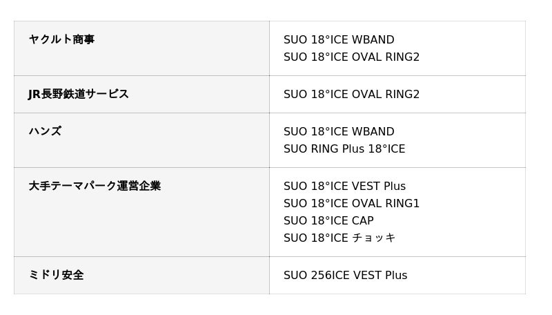 当社製品のSUOは、ヤクルト商事様、JR長野鉄道サービス様、ハンズ様、ミドリ安全様をはじめ、大手テーマパーク運営企業様など、多くの企業様にご導入・ご導入予定をいただいております。