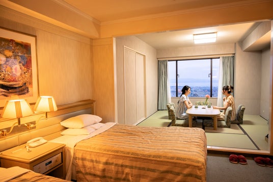 客室は全室37m2以上で猪苗代湖の正面。ツインベッドルーム、和洋室、スイートなど多彩なタイプが揃います。猪苗代温泉の露天風呂、複数のプールやジャグジー、サウナが揃う広大なスパ、レストラン、居酒屋、ラウンジなどの飲食店、カラオケ、郷土玩具のクラフト体験などが楽しめます。