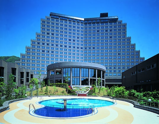 ホテル全景とガーデンプール、スパドーム