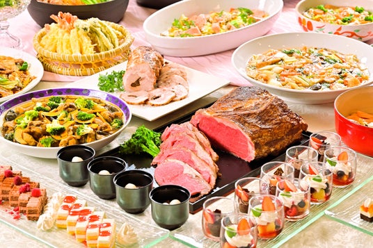 「春の東北六県うまいもの巡り」をテーマにしたディナービュッフェは、和・洋・中華の料理の他に、旬のいちごスイーツを多数ご用意しています。