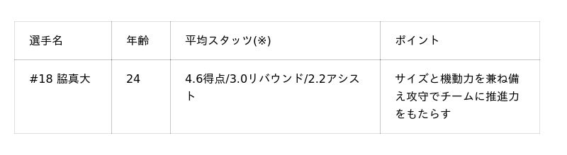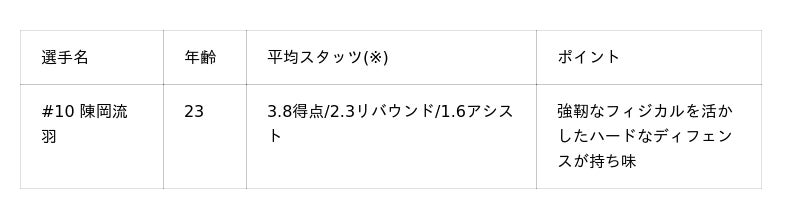 平均得点数17.4、平均リバウンド数7.0の#0 ロバート・フランクス選手や平均得点数14.1、平均リバウンド数9.5の#21 エリック・ジェイコブセン選手はもちろん、#18 脇真大選手と大学時代のチームメイトである#10 陳岡流羽選手との対決にも注目です。
