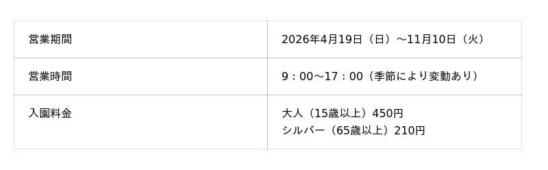 園内では、約120品種23万本の「チューリップ」や森を彩る山野草の女王「シラネアオイ」などの季節を彩る花々や滝巡りなどの自然、ここでしか遊べない大型遊具など一日中遊ぶことができます。