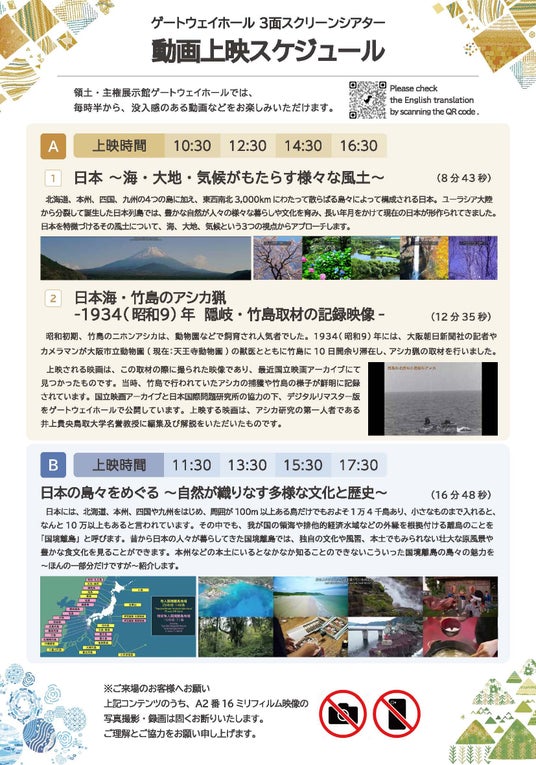 【領土・主権展示館ゲートウェイホール】3月24日(火)3面スクリーン動画「日本の島々を巡る:自然が織りなす多様な文化と歴史」公開