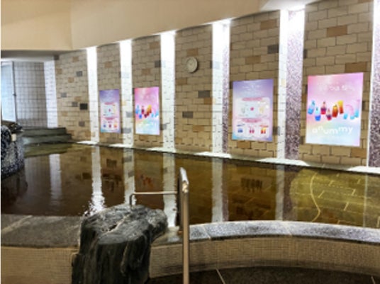 女性浴室内に特別な装飾を施し、伸ばすを楽しむダメージヘアケアブランド「anummy」と、やわふわ髪を目指す本質ケアブランド「Sorule」のシャンプーやトリートメントがお試しいただけるコーナーを設置いたします。