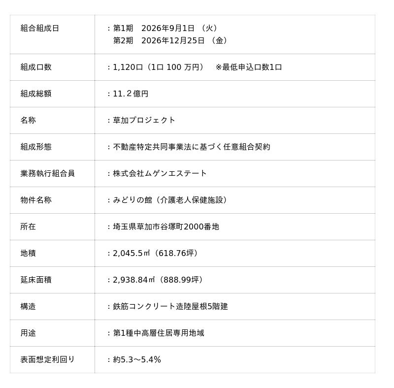 ■「ブドーさん 備える不動産小口投資」草加プロジェクト任意組合の概要