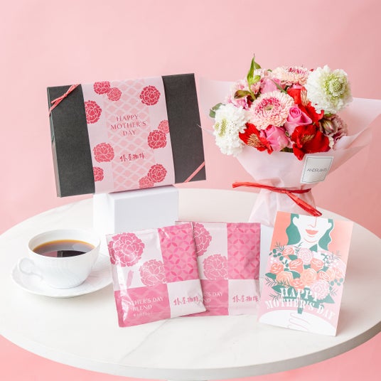 多彩な花材を贅沢に重ねた華やかな花束やアレンジメント、また暮らしを彩る観葉植物と心安らぐ時間を届けるコーヒーのセットは、心に響く母の日にふさわしい特別な贈り物です。