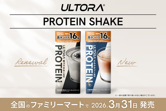 株式会社ULTORA(所在地:東京都渋谷区、代表取締役:山崎 玲)は、2026年3月31日(火)より全国*⁴のファミリーマートにて、「ULTORA プロテインシェイク」をリニューアルして順次販売開始いたします。