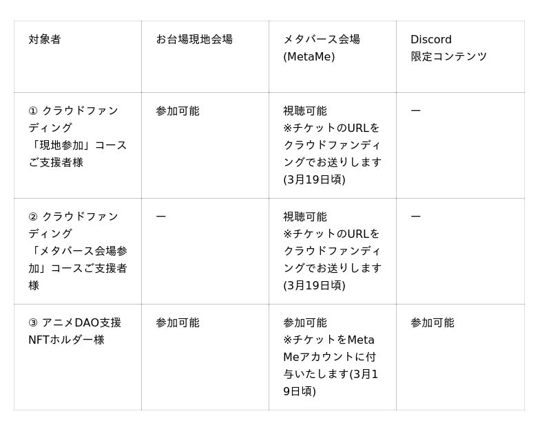 - - クラウドファンディングご支援者様(現地参加コース/メタバース会場参加コース)