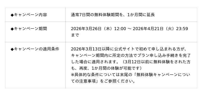 ・有料プランをご利用中のお客様はキャンペーン対象外となります。