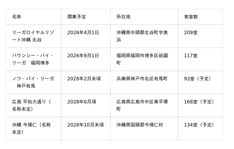 <ご参考:リーガロイヤルホテルズ 新オープンホテル情報>
