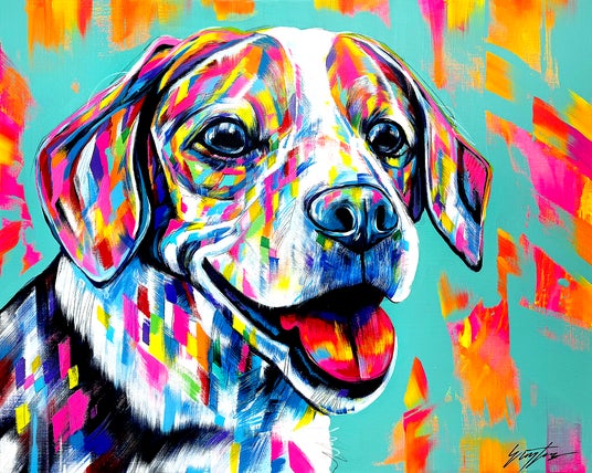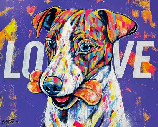 彼の作品は、犬という存在が持つ無償の愛と豊かな表情を、鮮やかな色彩で表現しています。