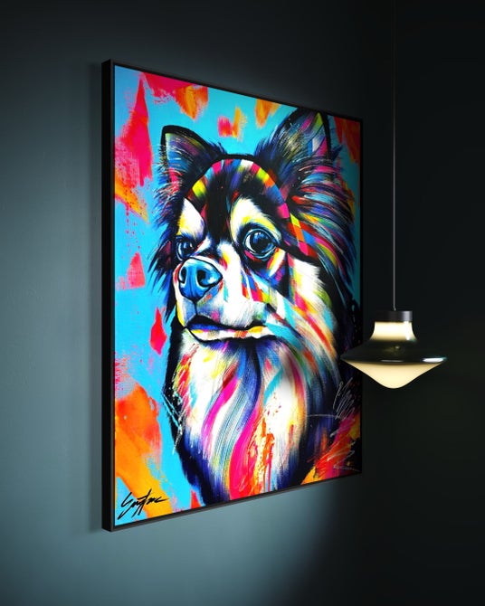 EIJI TAMURA DOG ARTは、独自の視点で犬のアートを創造するアーティストです。彼の作品は、動物の魅力を捉え、その個性と感情を色鮮やかに表現しています。このアートは、伝統的な肖像画に革新的なツイストを加え、見る人に強烈な印象を与えます。彼は色彩の豊かさと力強い筆のストロークを使い、犬の表情の細かなニュアンスまでを捉えることで、それぞれの犬が持つ独特の魂と個性をキャンバスに映し出します。