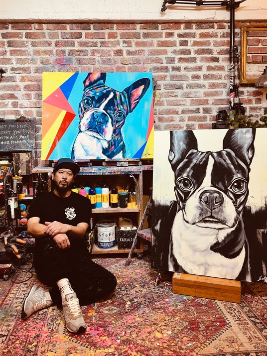 幼い頃から絵を描き始め、グラフィックデザイナーとしてのキャリアを経て、アート活動に専念したEIJI TAMURA DOG ART。彼のドッグアートは、自身の愛犬を描き始めたことからインスピレーションを受け、今では彼の作品の中心となっています。