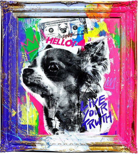 伝統的な肖像画の構造をベースにしながらも、そこに大胆で革新的な表現を加えることで、観る者に強烈な印象を与える。豊かな色彩と力強い筆致によって、表情のわずかなニュアンスまで丁寧に描き込み、それぞれの犬が持つ「魂」と「個性」をキャンバスに刻み込んでいる。