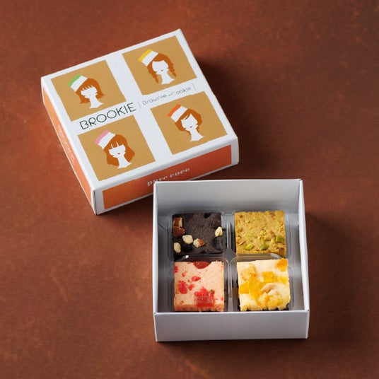 ブラウニーとクッキーの異なる魅力を一度に味わえる新感覚のハイブリッドスイーツです。ナッツの食感やフルーツの香り、優しい酸味など多彩な素材のハーモニーが楽しめる、華やかな彩りとキューブ型が愛らしい一品です。