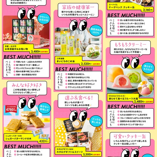 本特集は、贈る相手の好みやライフスタイルに合わせてギフトを選べる母の日特集です。 甘いものが好きなお母さん おしゃれなものが好きなお母さん 最近家族の健康が一番気になってるお母さん かわいいクッキー缶にときめくお母さんなど、それぞれの“らしさ”に寄り添いながら、パーソナライズされたギフト選びを提案します。 “何を贈るか”ではなく “どんな人に贈るか”から考える そんな新しい母の日の選び方を提示しています。