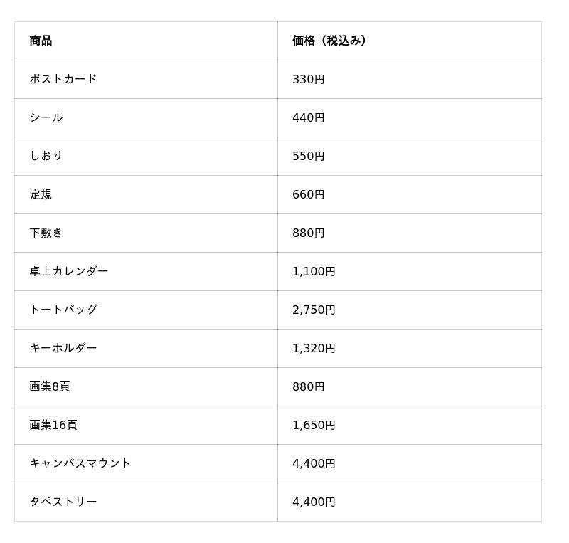 会場では、ポストカードやシールなどの小物アイテムをはじめ、トートバッグ、キャンバスマウント、タペストリーなど、うた坊の作品を楽しめるオリジナルグッズを販売します。イベント限定グッズは、キンコーズのオンラインショップ「Kinko’s fab」でも期間限定での販売を行います。