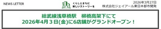 株式会社ジェイアール東日本都市開発(本社:東京都渋谷区代々木2-2-2 代表取締役社長:根本英紀)は、2026年4月3日(金)「潮見の日」に潮見高架下に4店舗開業いたします。本開業により飲食・サービスなど多様な業種が集積し、地域の利便性向上および駅周辺のにぎわい創出を図ってまいります。