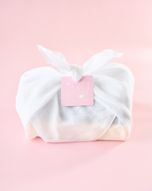 コラボセットは、すべて柔らかなキナリの「コットン100%」の布でお包みしてお届けします。