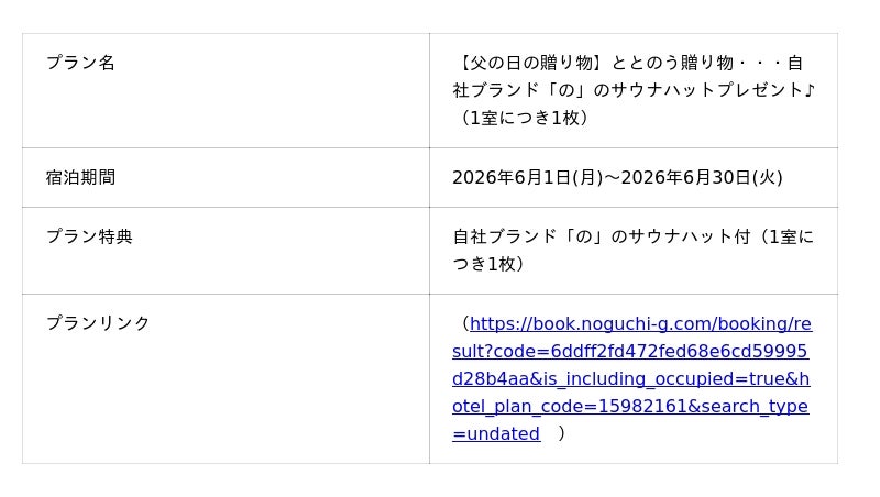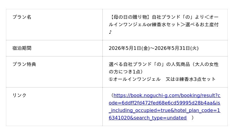 母の日・父の日にあわせた期間限定宿泊プラン