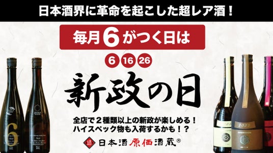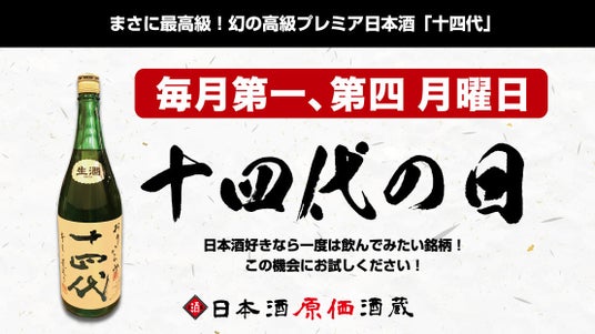 日本酒原価酒蔵全店および個室居酒屋 天日にて、毎月第一・第四月曜日に開催している「十四代の日」。