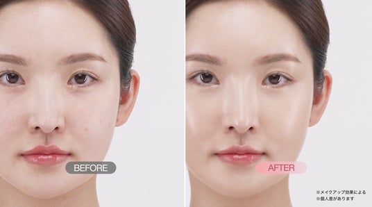 薄づきでも気になる部分をしっかりカバーし、厚塗り感を感じさせない、まるで素肌のような自然な仕上がりを実現。みずみずしさを感じるツヤ感が肌に溶け込むようになじみ、透明感のある印象へ導きます。