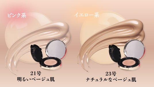カラーは、肌印象に合わせて選べる2色展開。明るく透明感を引き出すピンク系の21番と、自然でヘルシーな印象に仕上げるイエロー系23番。