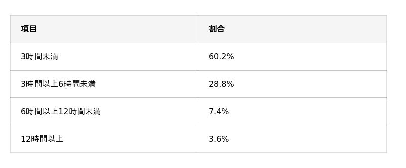 また、3時間以上利用する層が一定数存在していることから、外出先においても調べ物や連絡に限らず、複数の用途でインターネットが活用されている実態がうかがえます。