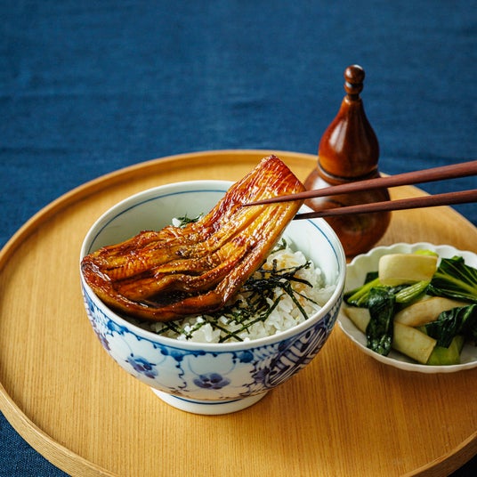 とろける白なすのかば焼き丼と生チンゲン菜の和風ナムル