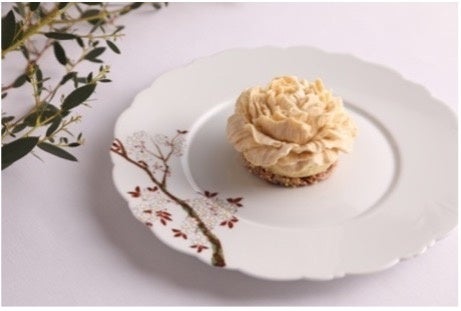 日本にインスピレーションを得て、ニナ・メタイエ氏はこのパティスリーに向けて、⼆つの文化が響き合うことをテーマにした新たなコレクションを創作しました。その一つとして手がけられたカメリア型のチョコレートは、日本を象徴する椿の花をモチーフにした一品。繊細にかたどられた美しいフォルムに、ブランドのロゴにも通じるカメリアモチーフへの敬意が込められています。
