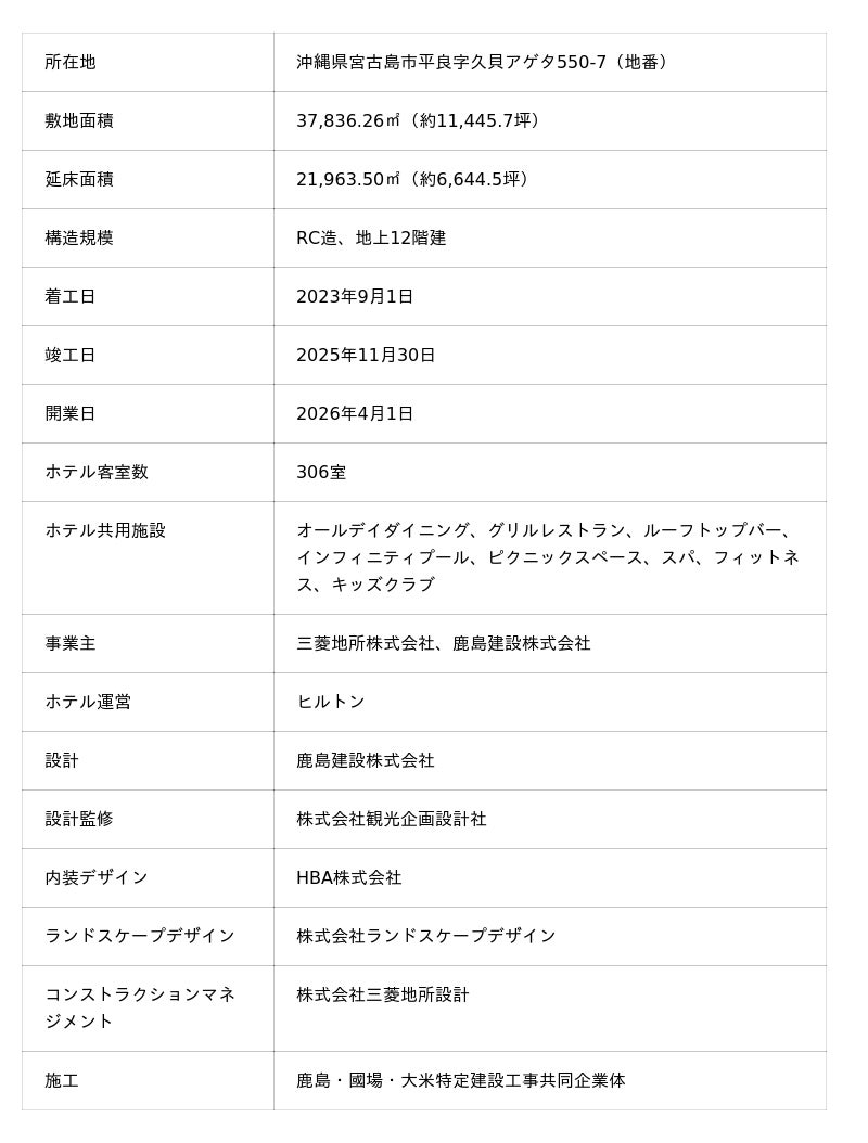 三菱地所株式会社(東京都千代田区、代表執行役 執行役社長:中島篤)、鹿島建設株式会社(東京都港区、代表取締役会長兼社長:押味至一)、ヒルトン(米国バージニア州、取締役社長 兼 最高経営責任者:クリストファ J. ナセッタ)は、ヒルトンのライフスタイルブランド 「キャノピーbyヒルトン沖縄宮古島リゾート」 を2026年4月1日(水)に開業いたします。