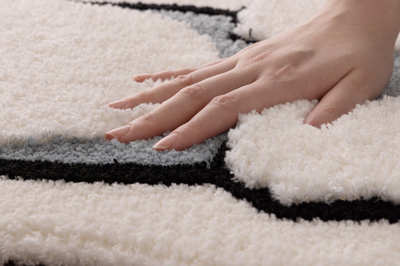 意図的に毛足の長さに段差(凸凹)をつける特殊加工を施すことで、ワンちゃんの体の曲線や毛の流れを立体的に表現しました。
